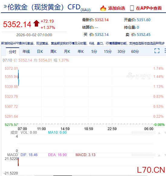 快讯:金银周一全线高开 黄金涨超1%