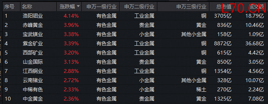 成份股方面,洛阳钼业领涨超4%,赤峰黄金、宝武镁业、紫金矿业、西部黄金、山金国际涨逾3%,江西铜业、云南锗业、中稀有色、中金黄金等个股跟涨。