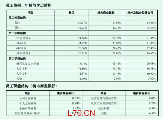 截至2025年末,中国银行共有员工313746人。境内机构员工287855人,其中境内商业银行机构员工(含总行、一级分行、直属分行、二级分行及基层分支机构)274487人;中国香港澳门台湾及其他国家和地区机构员工25891人。年末,该行需承担费用的离退休人员数为4080人。