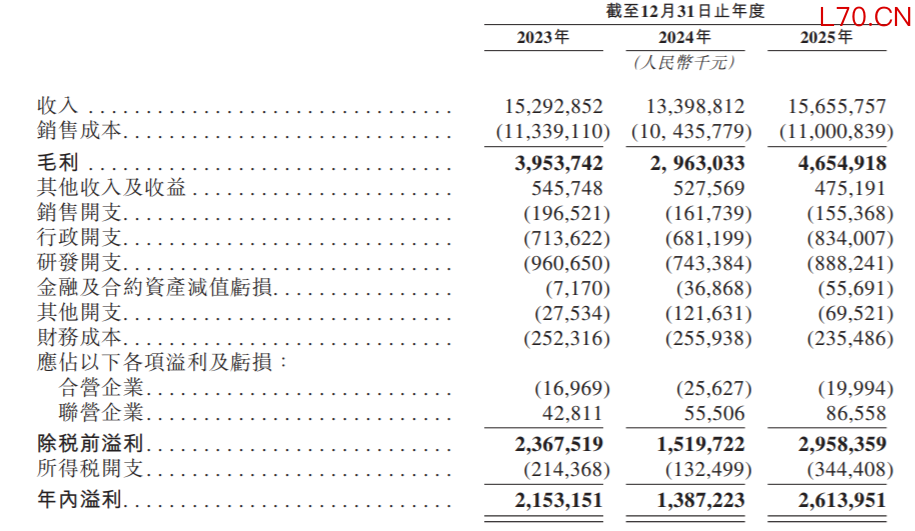 业绩方面,2023年至2025年,璞泰来分别实现营业收入152.93亿元、133.99亿元和156.56亿元,年内利润分别为21.53亿元、13.87亿元和26.14亿元,毛利率分别为25.9%、22.1%和29.7%。