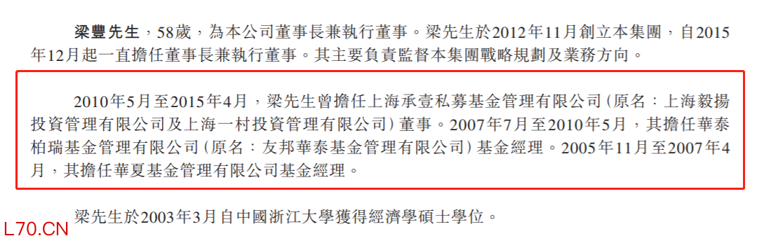 更早之前,梁丰曾任职于东莞新科磁电制品有限公司,后跨界进入金融领域。投身公募基金行业,入职中信集团旗下的中大投资管理公司。