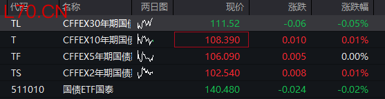 债市:国债期货全线下跌,截至发稿,30年期主力合约跌0.05%,10年期主力合约涨0.01%,5年期主力合约持平,2年期主力合约涨0.01%。