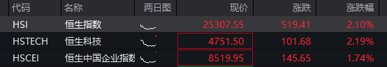 港股:截至发稿,恒指涨2.10%,恒科指涨2.19%。