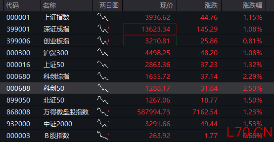 A股:截至发稿,沪指涨1.15%,深成指涨1.08%,创业板指涨0.81%。